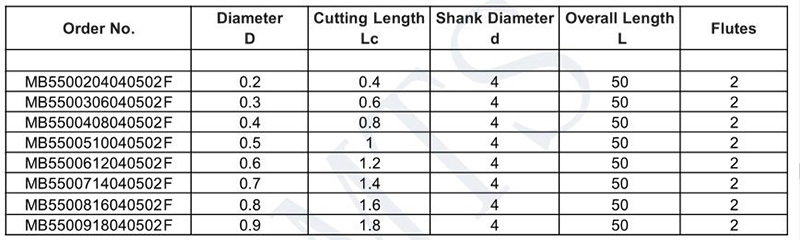HRC55 Carbide 2 Flute Micro End Mill